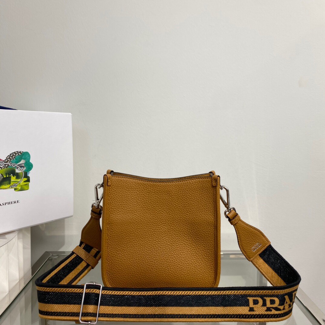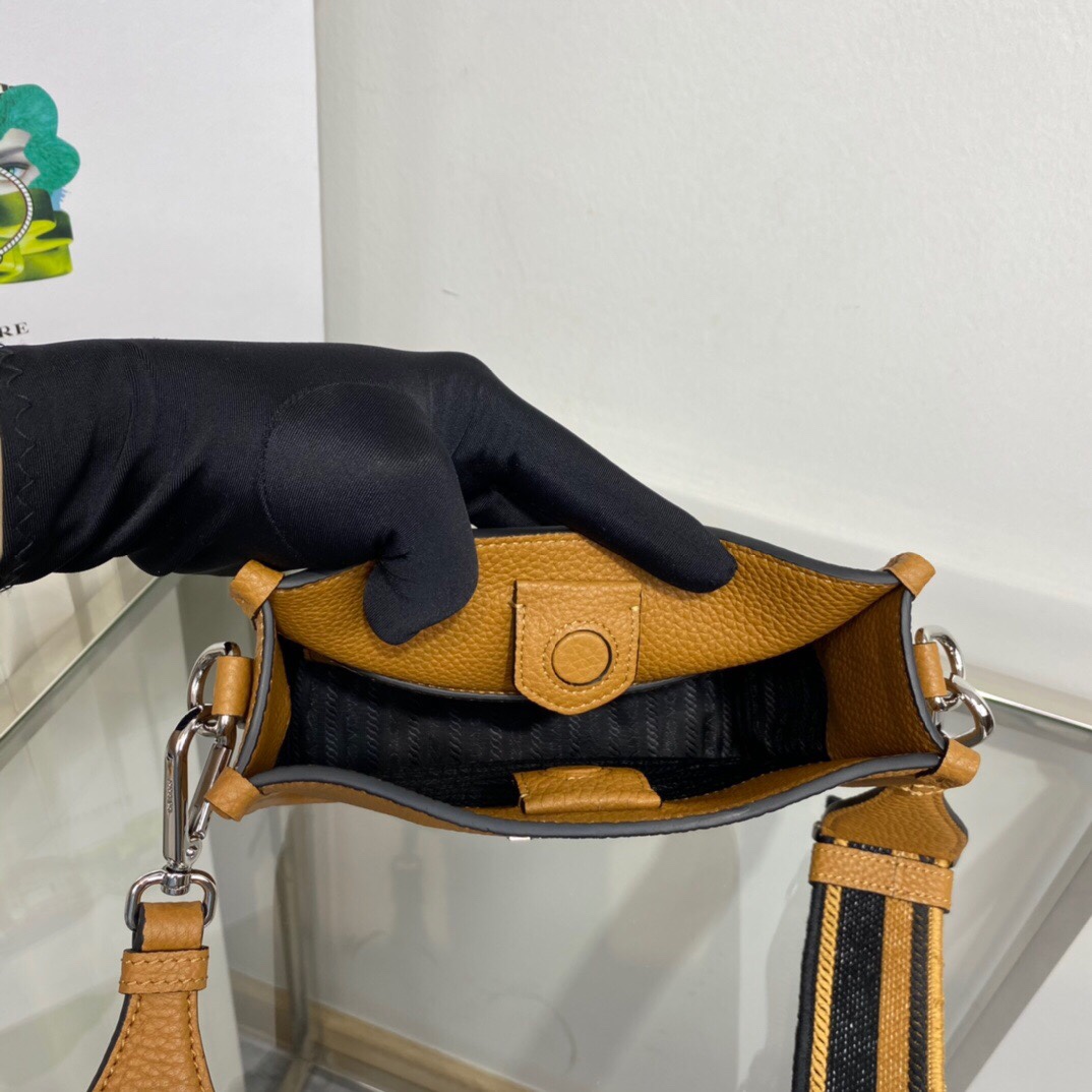 The sleek design of this mini shoulder bag is emphasized on the front by the metal triangle logo that adds an iconic note. The detachable logo-print woven tape shoulder strap emphasizes the contemporary character of the accessory.