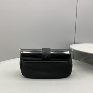 Sophisticated allure and technical-inspired details characterize this nylon and brushed shoulder bag. The accessory with adjustable shoulder strap is accented with a logo-engraved side-release buckle and lining in Re-Nylon, a regenerated nylon yarn produced from recycled and purified plastic trash collected in the ocean, fishing nets, and textile fiber waste.