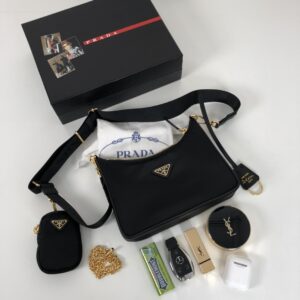An iconic silhouette with sophisticated details that enhance the design: Prada transforms the classic shoulder bag, reinterpreting it in Re-Nylon with a cross-hatch motif that is a hallmark of the brand. The accessory is completed by a removable pouch and Re-Edition keychain, making the bag unique and functional.
