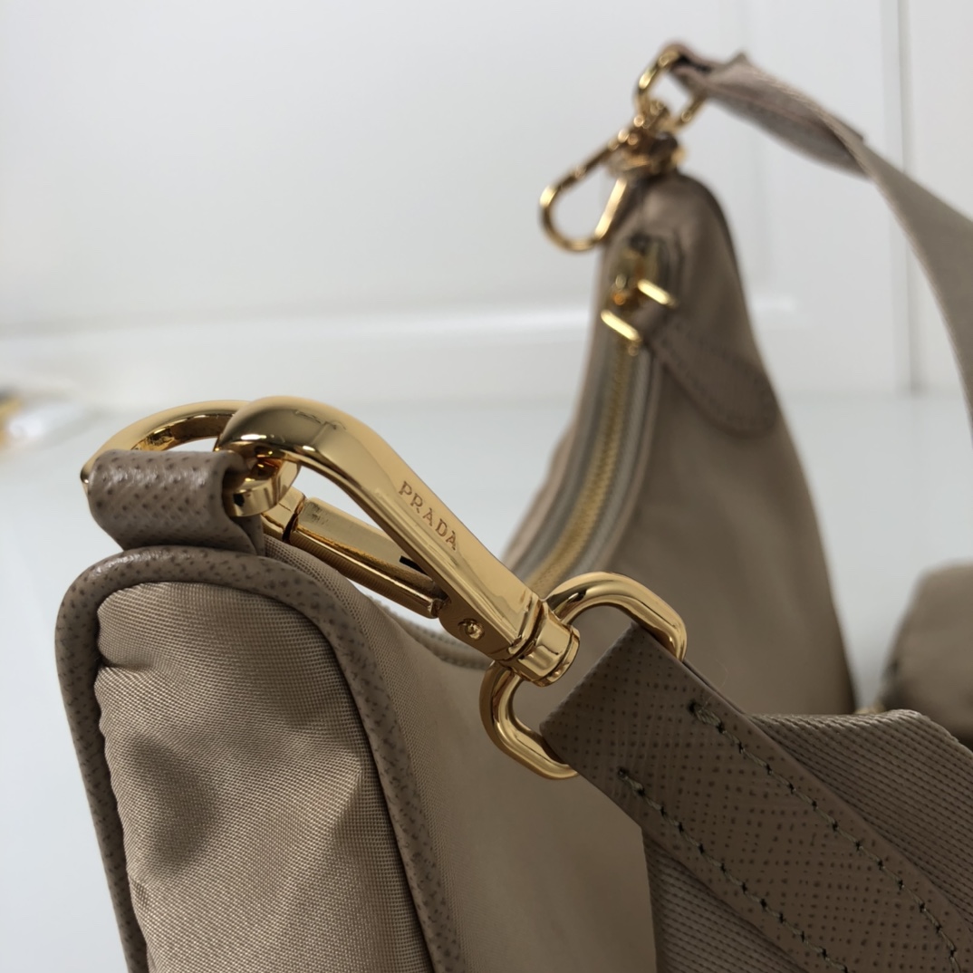 An iconic silhouette with sophisticated details that enhance the design: Prada transforms the classic shoulder bag, reinterpreting it in Re-Nylon