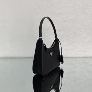 Inspired by the iconic mini hobo bag, the Prada Re-Edition 2005 shoulder bag is made of Re-Nylon: a regenerated nylon yarn produced from recycled, purified plastic trash collected in the ocean, fishing nets and textile waste fibers. Practical and feminine, the mini bag is decorated with iconic Saffiano trim. It features a contemporary mix of materials.