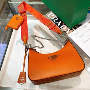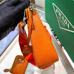 Inspired by the iconic mini hobo bag, the Prada Re-Edition 2005 shoulder bag is made of Re-Nylon: a regenerated nylon yarn produced from recycled, purified plastic trash collected in the ocean, fishing nets and textile waste fibers. Practical and feminine, the mini bag is decorated with iconic Saffiano trim. It features a contemporary mix of materials.