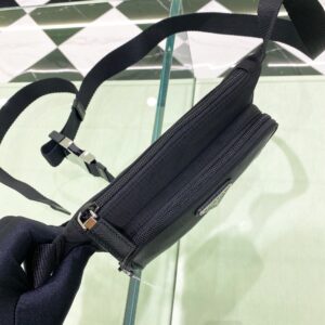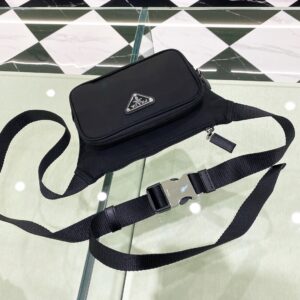 Technologically innovative fabrics meet classic traditional materials in the new Spring Summer 2021 collection. Garments and accessories reveal new volumes and celebrate contradiction. This Re-Nylon bag with Saffiano details blends past and future, luxury and simplicity. Re-Nylon, a functional fabric and vehicle of experimentation, is a regenerated nylon yarn produced from recycled and purified plastic trash collected in the ocean, fishing nets, and textile fiber waste. It is combined in this bag with Prada’s iconic Saffiano calf of the highest quality defined by a crosshatch texture and wax finish.