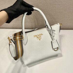 Sophisticated, subtle details bring new life to the brand’s iconic designs like the Prada Double bag with its new versatile and sophisticated mini design. Iconic metallic lettering adorns the front, while a removable shoulder strap allows the bag to be worn over the shoulder or as a crossbody bag.