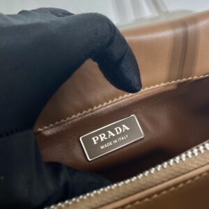 A study of the lines characterizes this small handbag. It stands out for its absolutely elegant silhouette emphasized by the long, narrow handle. This three-pocket accessory is decorated with the metal lettering logo.