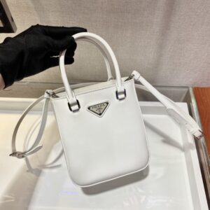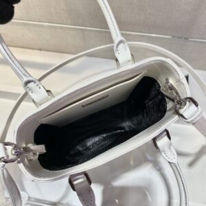 This small tote with a sleek, square design is made of brushed , an iconic material of the brand since the nineties and traditionally tied to the luxury world. The design, completed by the detachable shoulder strap, can be worn in several ways.