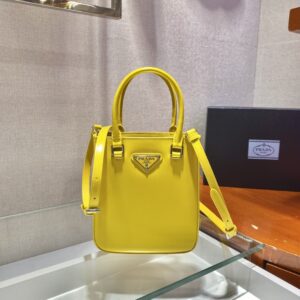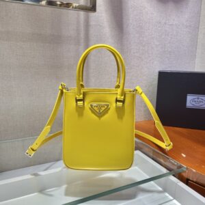 Prada Small Brushed Tote Yellow For Women, Women’s Bags 6.9in/18cm 1BA331_ZO6_F0ZNZ_V_OOO