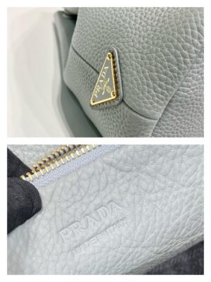 Hemp bag with silkscreen Prada logo and vintage enamel triangle logo on the sides. Inside, three pockets and a lightweight hemp lining.