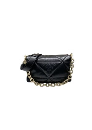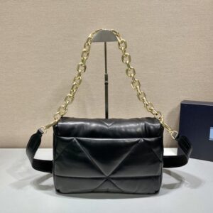 Prada System Nappa Patchwork Shoulder Bag Black For Women, Women’s Bags 7.5in/19cm