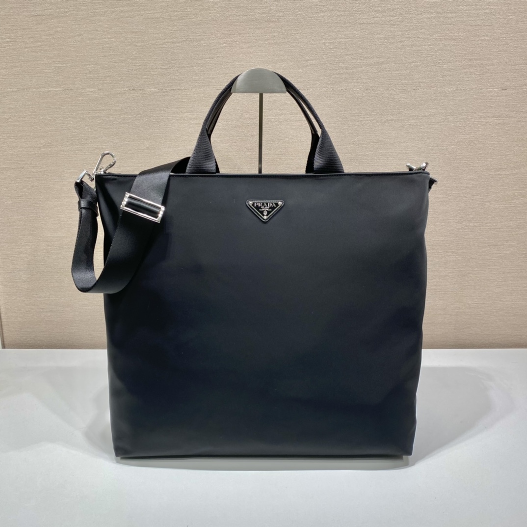Sporty and versatile, this shopping bag is inspired by the iconic heritage and aesthetic code of both brands. Also reworked adidas’ trademark three stripes into Saffiano . An iconic Prada material defined by a crisscross texture. Handcrafted accessories from Re-Nylon. An innovative fabric produced from recycled and purified plastic collected in the ocean.