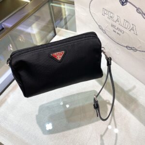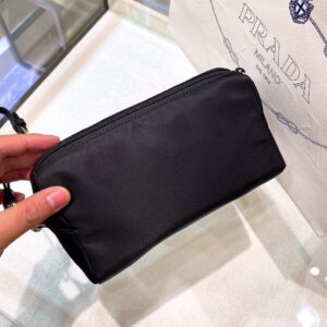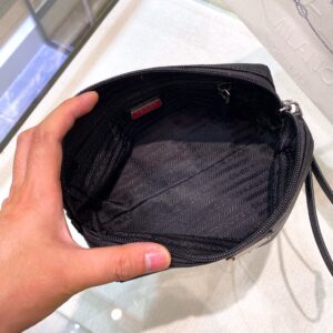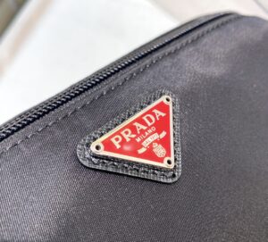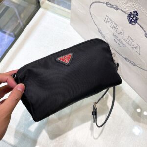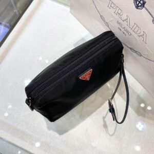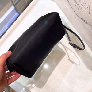 Re-Nylon Necessaire Bag is characterized by its sleek line is made of Prada’s innovative fabric. Enhanced by the triangle logo, the accessory with zipper closure has logo-print lining.
