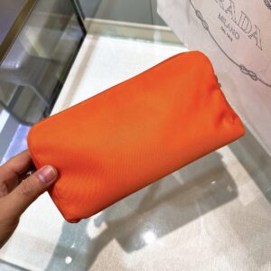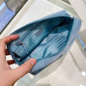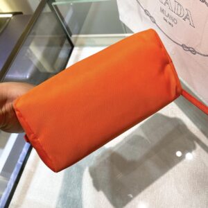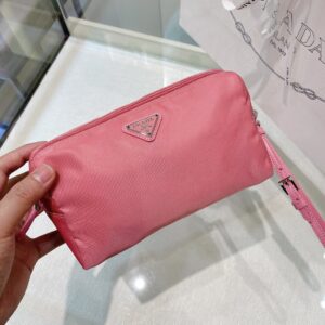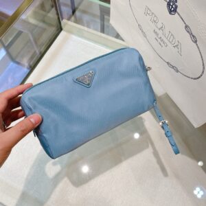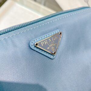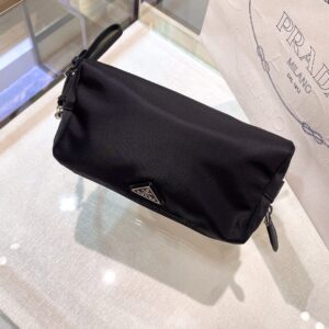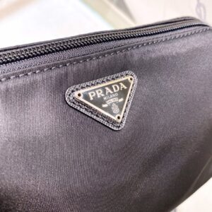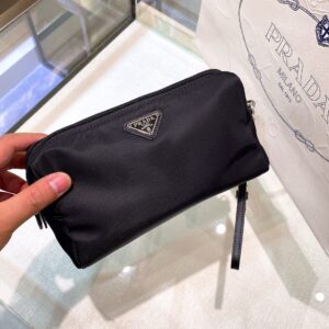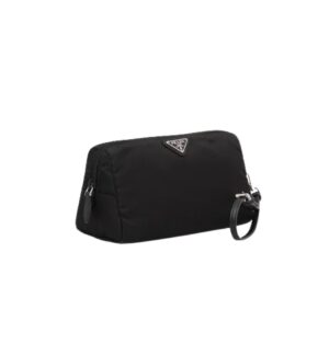 Re-Nylon Necessaire Bag is characterized by its sleek line is made of Prada’s innovative fabric. Enhanced by the triangle logo, the accessory with zipper closure has logo-print lining.