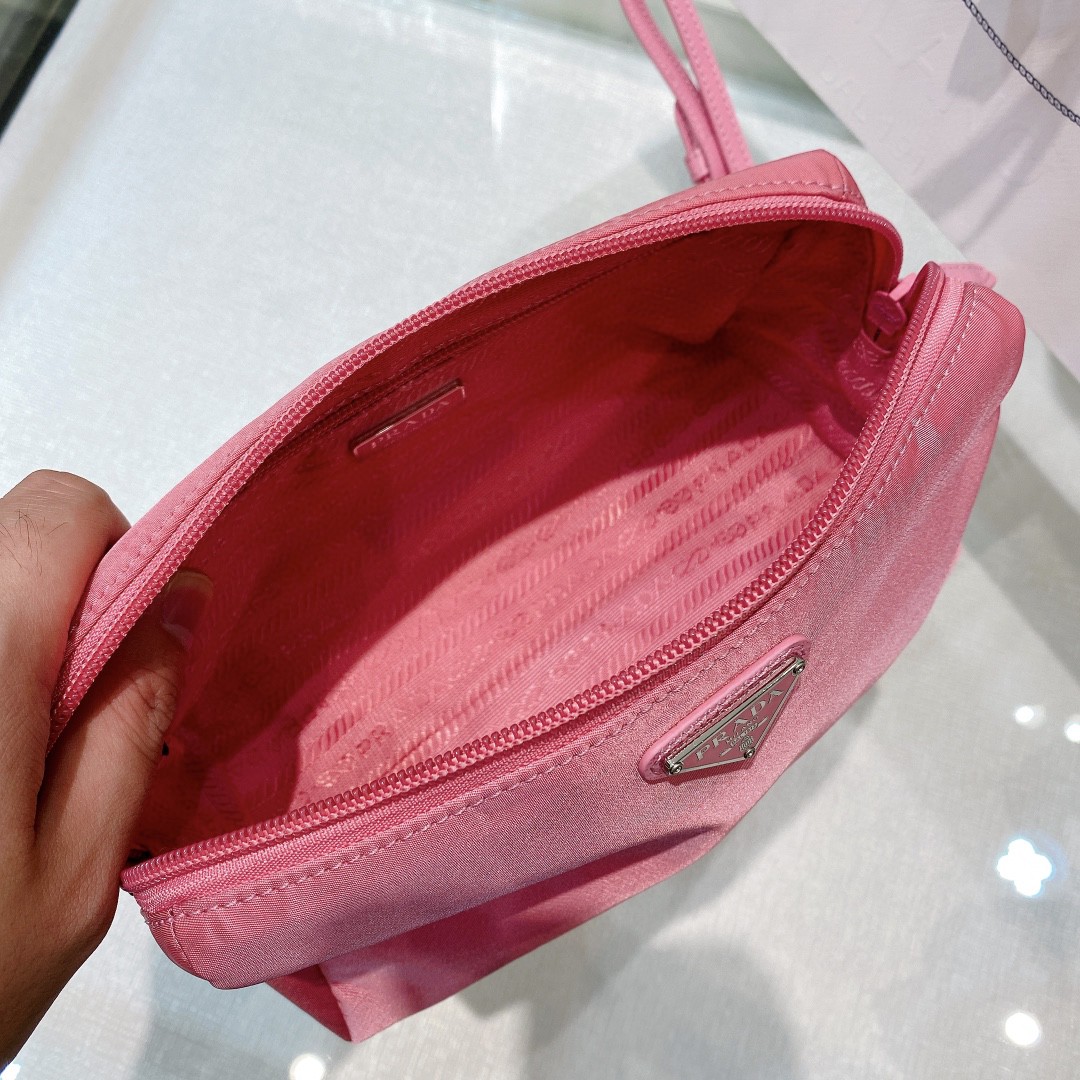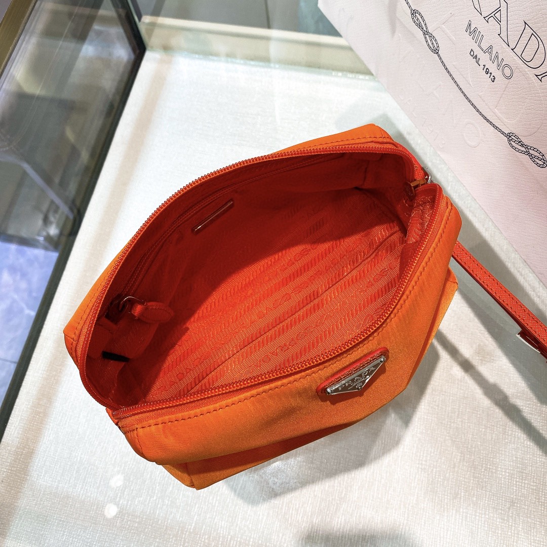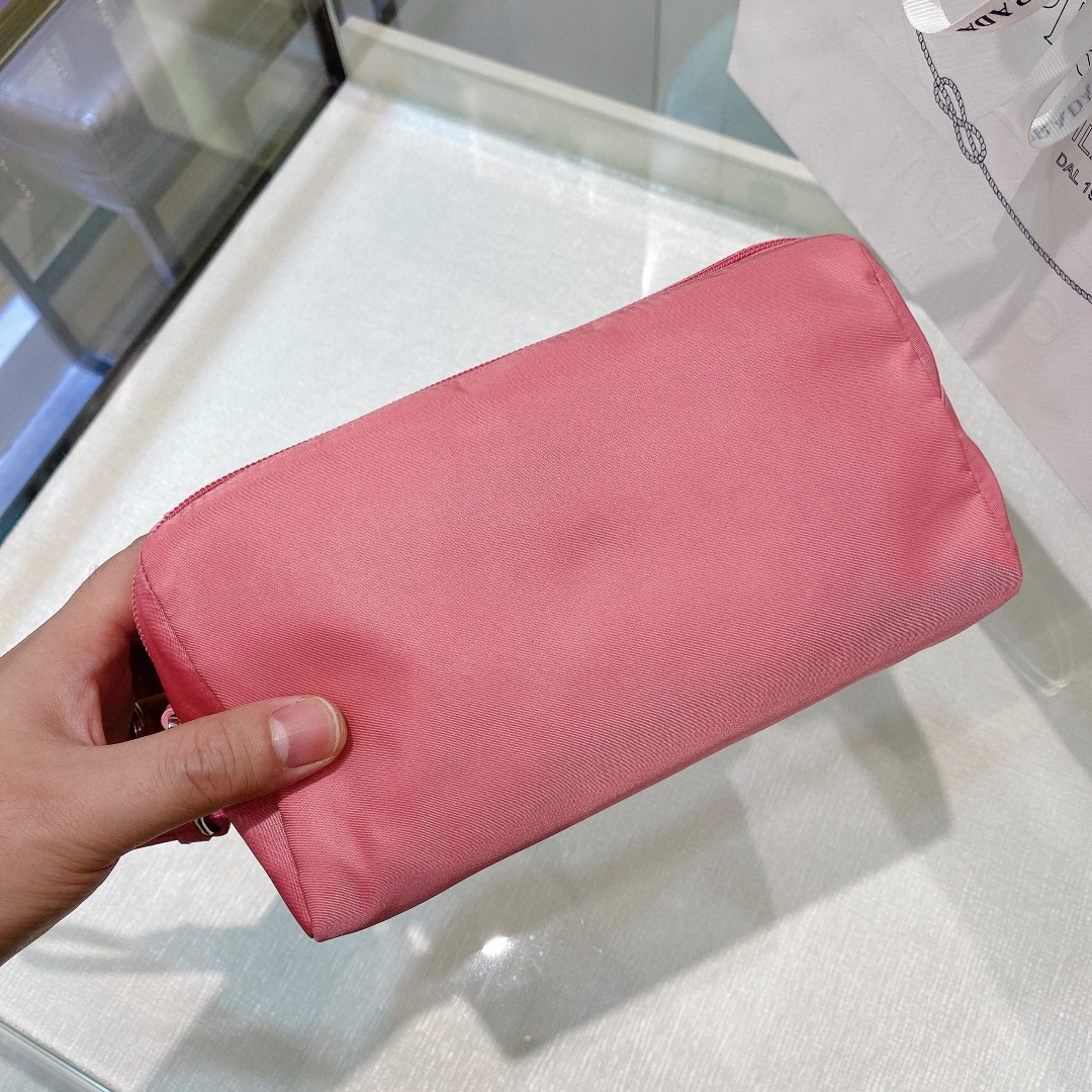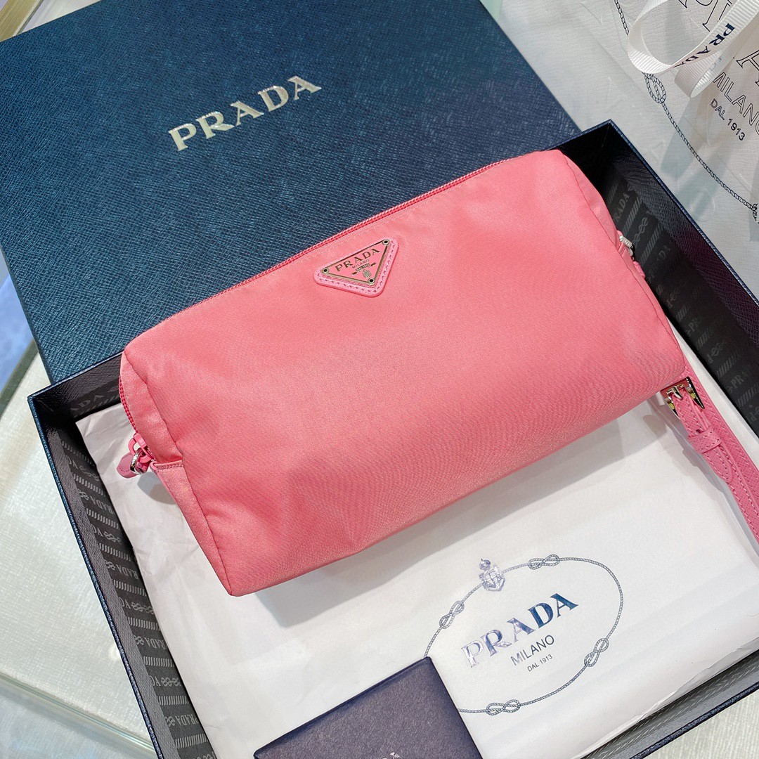 Re-Nylon Necessaire Bag is characterized by its sleek line is made of Prada’s innovative fabric. Enhanced by the triangle logo, the accessory with zipper closure has logo-print lining.