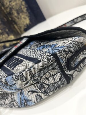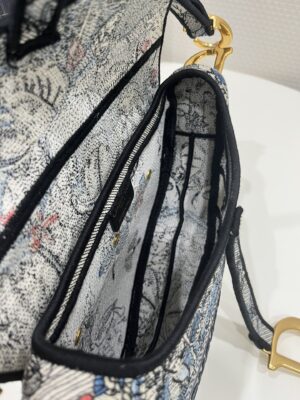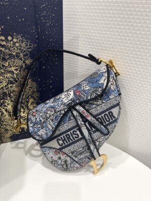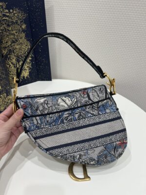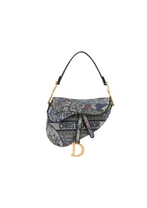 Maria Grazia Chiuri brings a fresh update to the iconic Saddle bag. Fully embroidered with the denim multicolor Dior Jardin Magique motif, the bag reveals a bucolic and enchanting design, inspired by a magical world. The legendary bag features a Saddle flap with a magnetic ‘D’ stirrup clasp and boasts an antique gold-finish metal ‘CD’ signature on each side of the handle. The bag can be carried by hand or worn over the shoulder and may be customized with different shoulder straps.