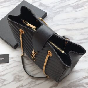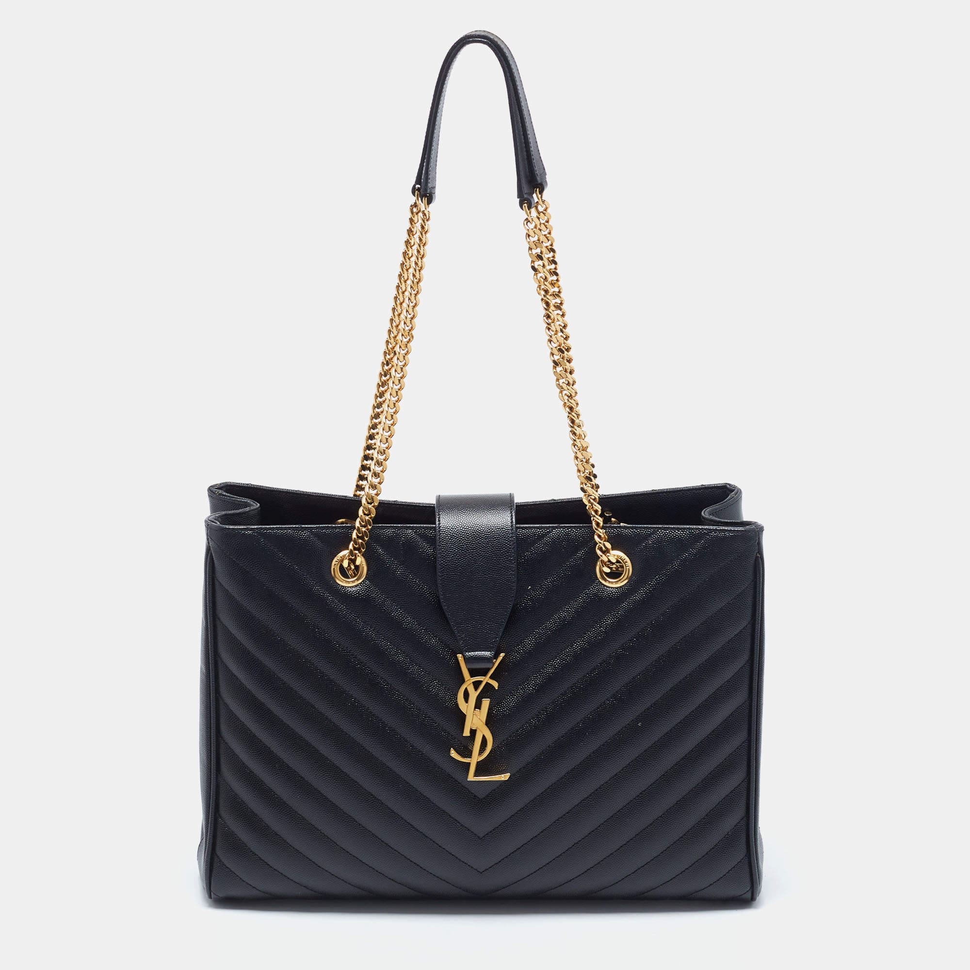 Saint Laurent Black Chevron Leather Monogram Chain Cassandre Tote