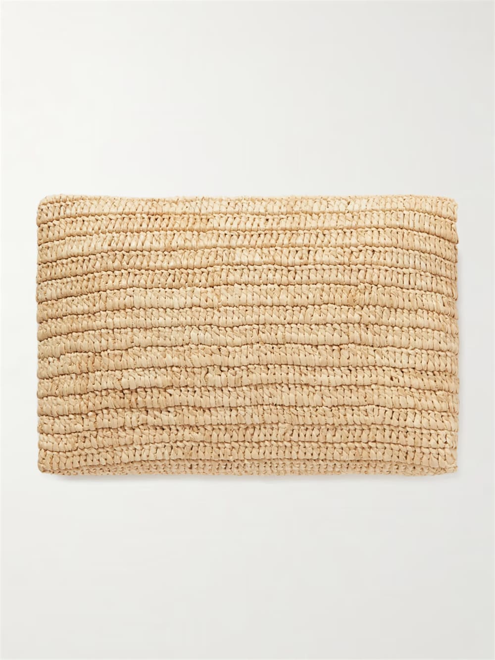Saint Laurent Cassandre Large Envelope Pouch in Raffia