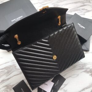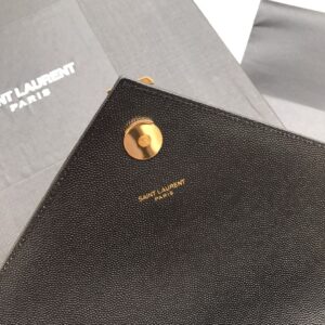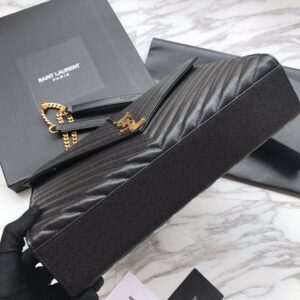 CLASSIC MONOGRAM Saint Laurent DOUBLE GOURMETTE CHAIN FLAP FRONT BAG IN TEXTURED MATELASSe LEATHER WITH GOLD-TONED METAL YSL SIGNATURE AND MATELASSe STITCHING.