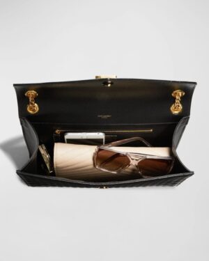Saint Laurent shoulder bag in chevron/diamond-quilted, chrome/metal-free tanned leather.