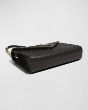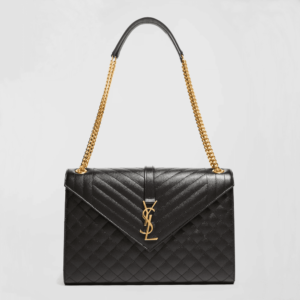 Envelope flap top with YSL logo; magnetic closure.