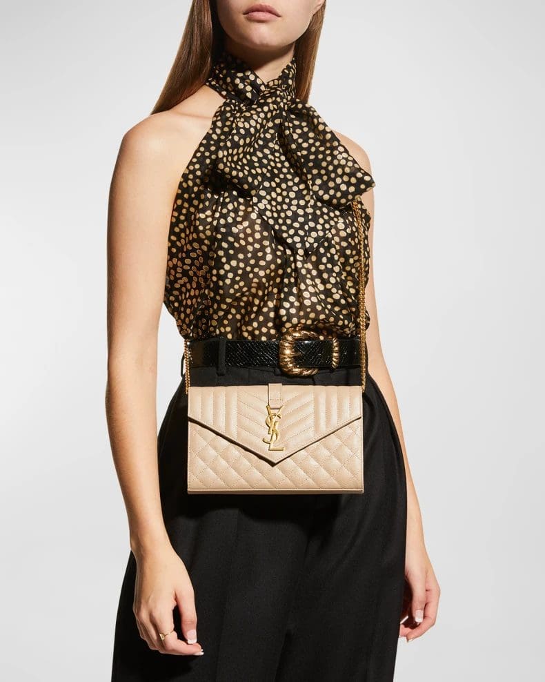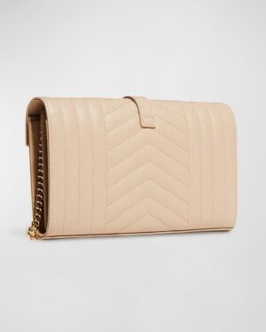 Saint Laurent Envelope Triquilt YSL Wallet on Chain in Grained Leather