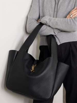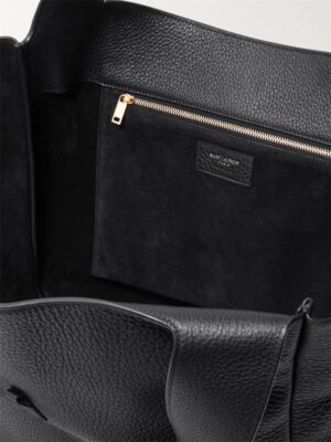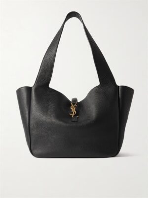 SAINT LAURENT’s ‘Le 5 À 7 Bea’ tote is made from textured-leather in a generous, slouchy shape. It has wide handles that sit comfortably over the shoulder and features the signature gold-tone ‘Cassandre’ logo on the tab fastening. You can fit a tablet, continental wallet and spare flats inside, and use the internal zipped pocket to secure your keys and lip balm.