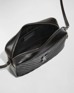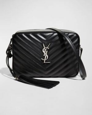 Elegant quilted crossbody flaunts brand’s iconic silvertone logo.