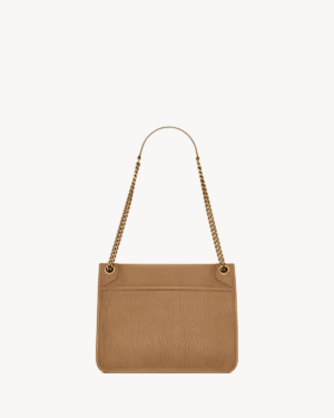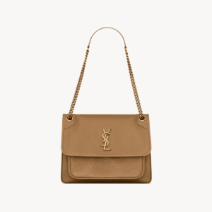 This spacious bag features multiple pockets, while a sliding leather-and-chain shoulder strap allows for both shoulder and crossbody carry options.