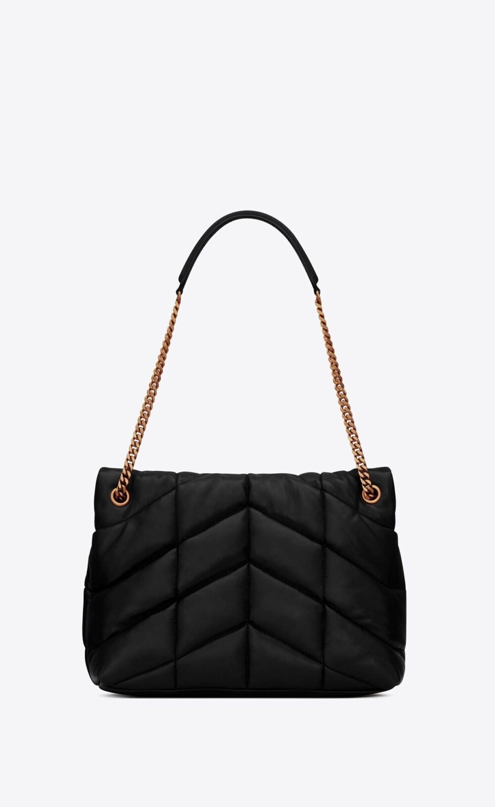 ENVELOPE STYLE FLAP BAG WITH SOFT V-SHAPED QUILTED TOPSTITCHING.