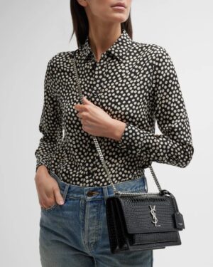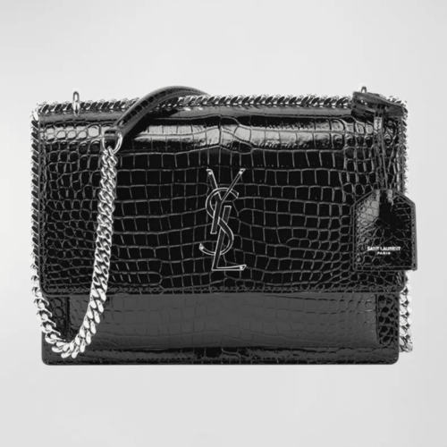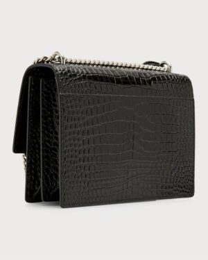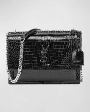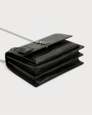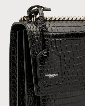 Saint Laurent FLAP FRONT BAG WITH ACCORDION SIDES, LEATHER AND CHAIN STRAP THAT CAN BE WORN CROSSBODY OR DOUBLED ON THE SHOULDER, LEATHER ENCASED KEY RING AND METAL INTERLOCKING YSL SIGNATURE.