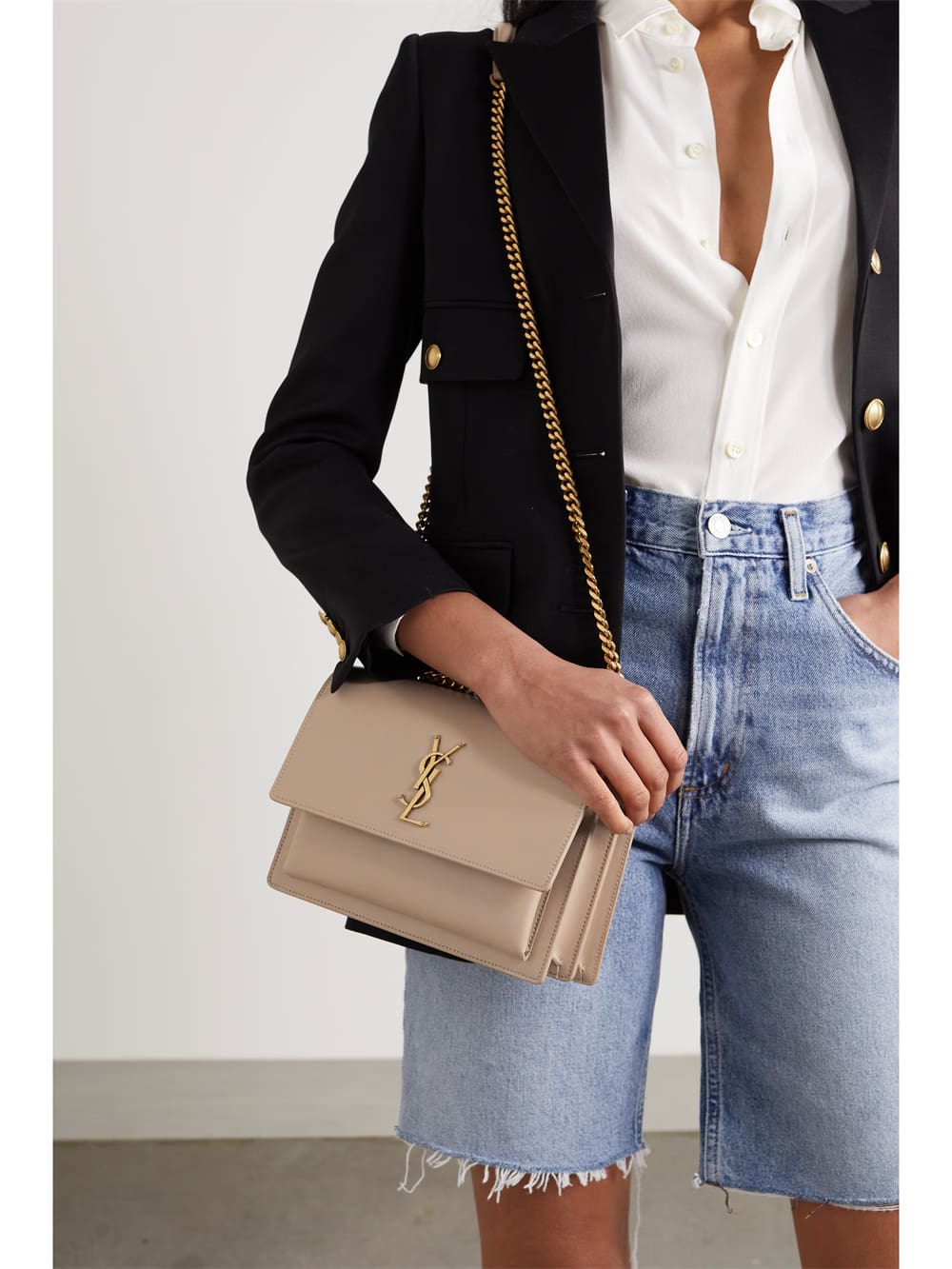 SAINT LAURENT’s ‘Sunset’ bag has a structured accordion silhouette with ample space for your essentials. It’s been made in Italy from smooth leather and punctuated on the front flap with the label’s interlocking ‘YSL’ logo. The chain strap is adjustable, so you can either wear it over your shoulder or cross-body.