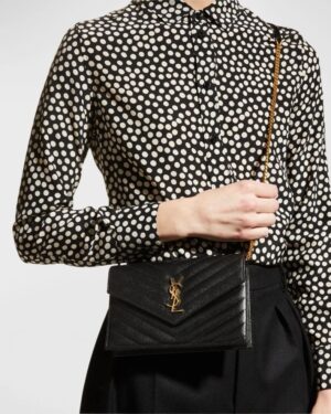 Saint Laurent YSL Monogram Small Wallet on Chain in Grained Leather