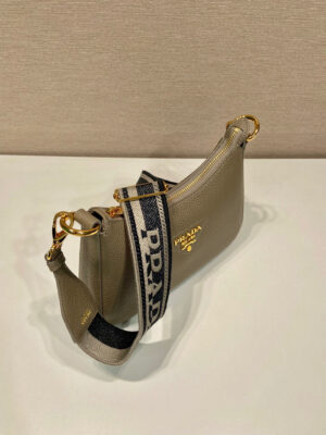 This shoulder bag, featuring a modern silhouette with soft sides, features a gleaming metal lettering logo on the flap. The adjustable woven tape shoulder strap decorated with the logo in a contrasting color makes this bag versatile, allowing it to be worn as a crossbody or shoulder bag.