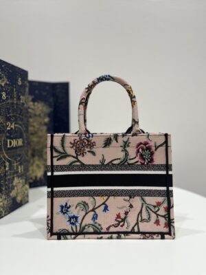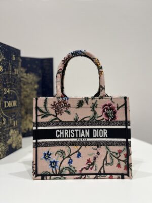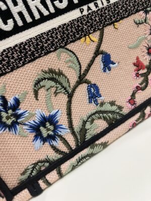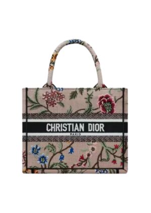 Introduced by Maria Grazia Chiuri, Creative Director of Christian Dior, the Large Dior Book Tote Bag has become a staple of the Dior aesthetic. Designed to hold all daily essentials, the style is fully embroidered with a multicolor Dior Petites Fleurs motif, a romantic and vibrant homage to Mr. Dior’s passion for florals. Adorned with the Christian Dior Paris signature on the front, the small tote exemplifies the House’s signature savoir-faire and may be carried by hand.