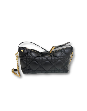 • New this season, Maria Grazia Chiuri imagines the Nomad bag, a modern, hybrid design. Crafted in black, it is characterized by the unique quilted effect of its Macrocannage stitching. The versatile accessory features a short handle with a military-inspired ‘CD’ buckle. The small bag’s handle can be adjusted for use as a shoulder strap, while the detachable chain is completed by a insert, offering comfort and elegance for multiple wears.