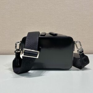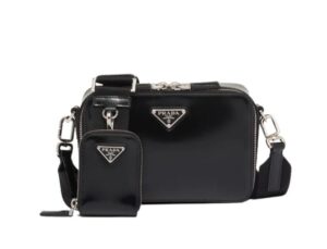Small Prada Brique Bag is the lines are sleek on the contemporary Prada Brique bag with a handle and detachable adjustable nylon tape shoulder strap that makes the design light and versatile. An iconic material of the brand since the nineties and historically tied to the luxury world. The triangle logo first introduced on trunks designed by Mario Prada enhances the accessory, a perfect blend of elegance and practicality.